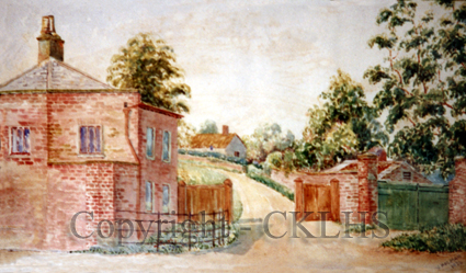 Withyholt Farm, Moorend Road, Charlton Kings - once Charlton Park's 'Home Farm'. Sandy Lane junction is on the right. The farm was demolished c1964 for the building of private housing called Withyholt Park.