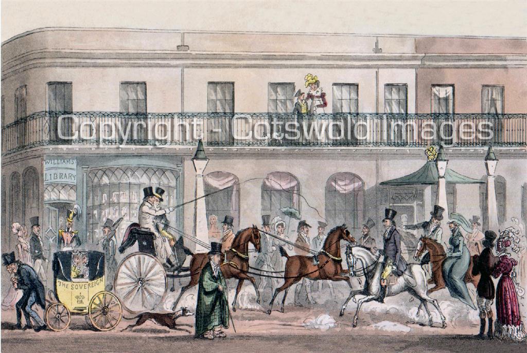 Regency class-satire: 'Eccentrics in Cheltenham High Street' by Robert Cruikshank, 1824.