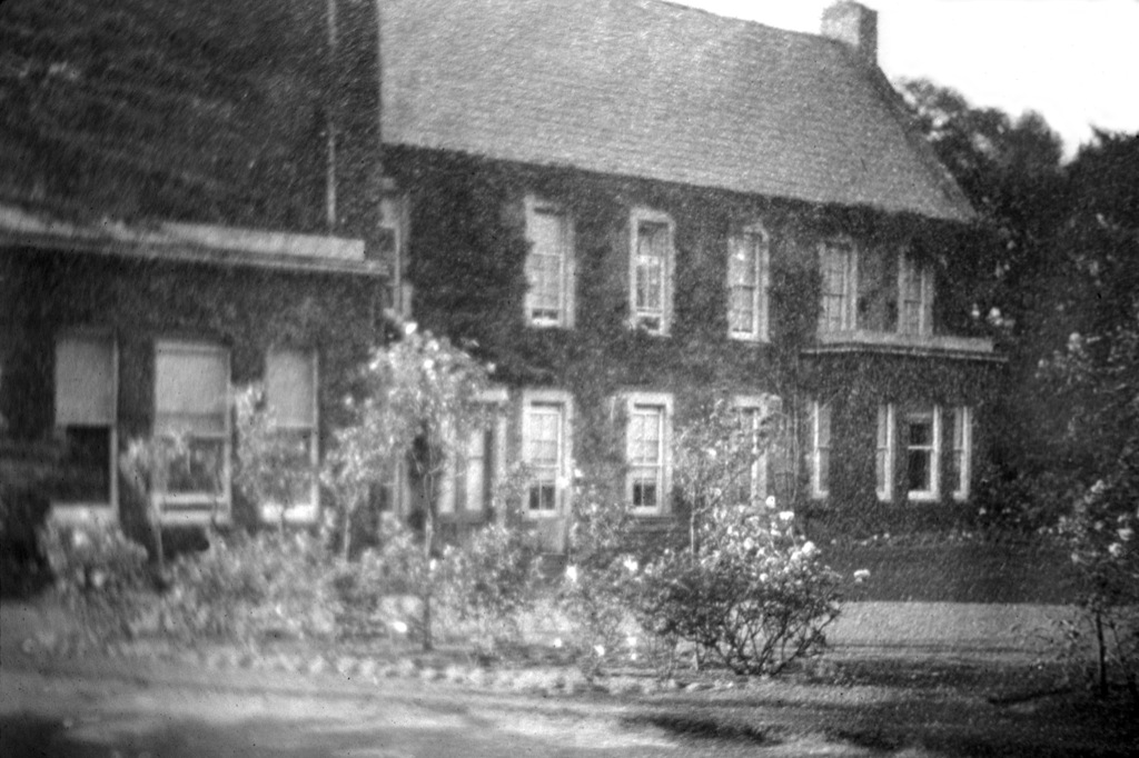 © CKLHSThe ivy clad, symmetrical front (not always symmetrical) louvered shutters and fanlight window in the pediment